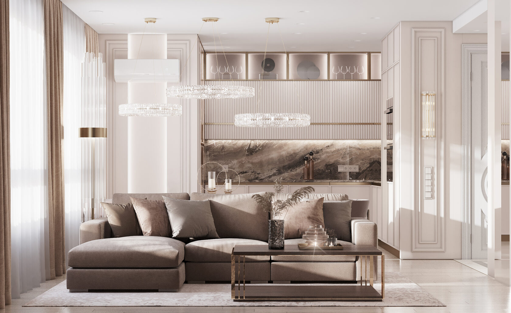 Проект в ЖК "Крылья" — это история о создании стильного и светлого интерьера для молодой пары с дочкой. Заказчики мечтали о дорогом и элегантном пространстве, которое визуально передавало бы ощущение роскоши, и при этом имели хороший бюджет, чтобы воплотить все свои идеи.